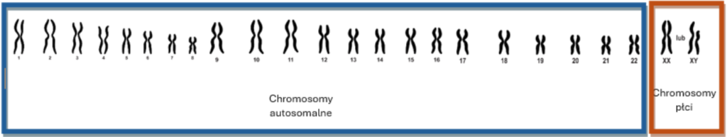 | Przykłady chorób autosomalnych recesywnych: mukowiscydoza, rdzeniowy zanik mięśni. | Przykłady chorób sprzężonych z chromosomem X: dystrofia mięśniowa Duchenne’a, zespół łamliwego chromosomu X. |